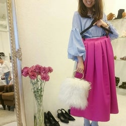 ビビットピンクのスカートコーデ アルコット